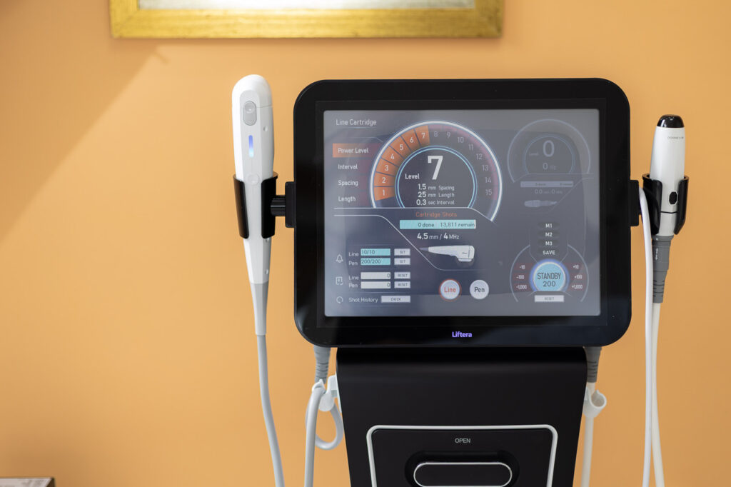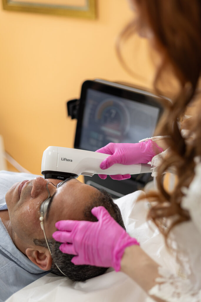 2. Aplicação com Liftera Black 2.0 – ultrassom microfocado que estimula colágeno e elastina.
